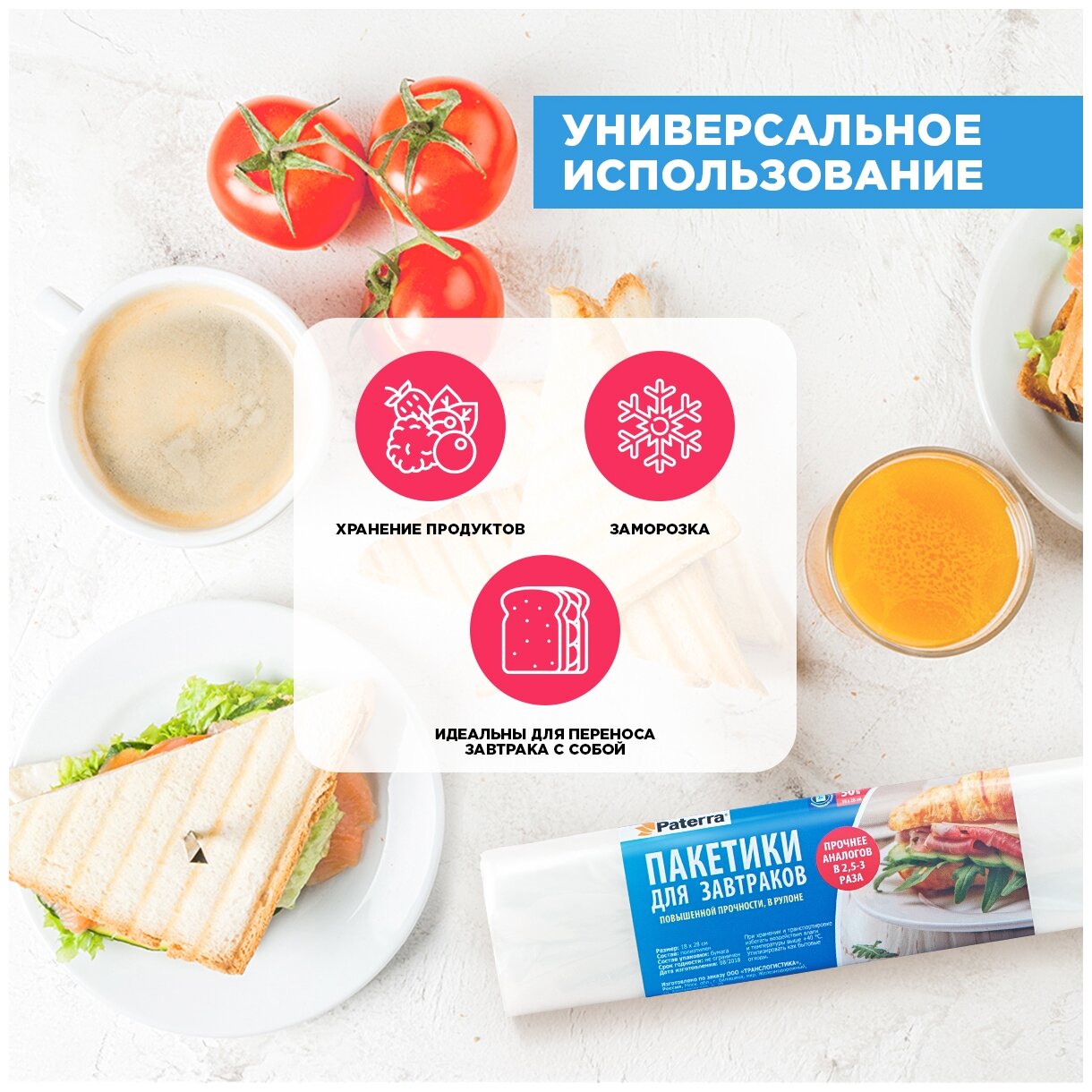 Пакеты для хранения PATERRA 50шт 18*28см для завтраков