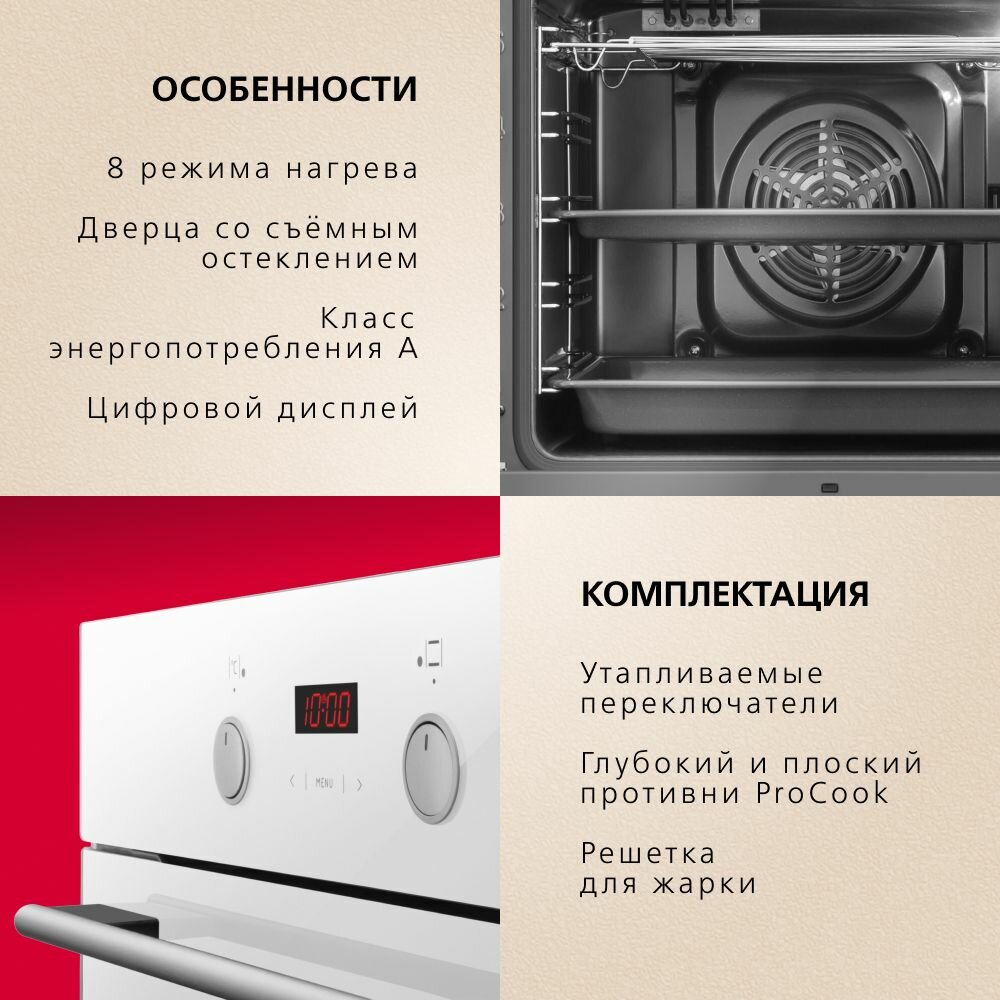 Духовой шкаф DEXP 1MMT-W , электрический, белый, 8 режимов, таймер, конвекция