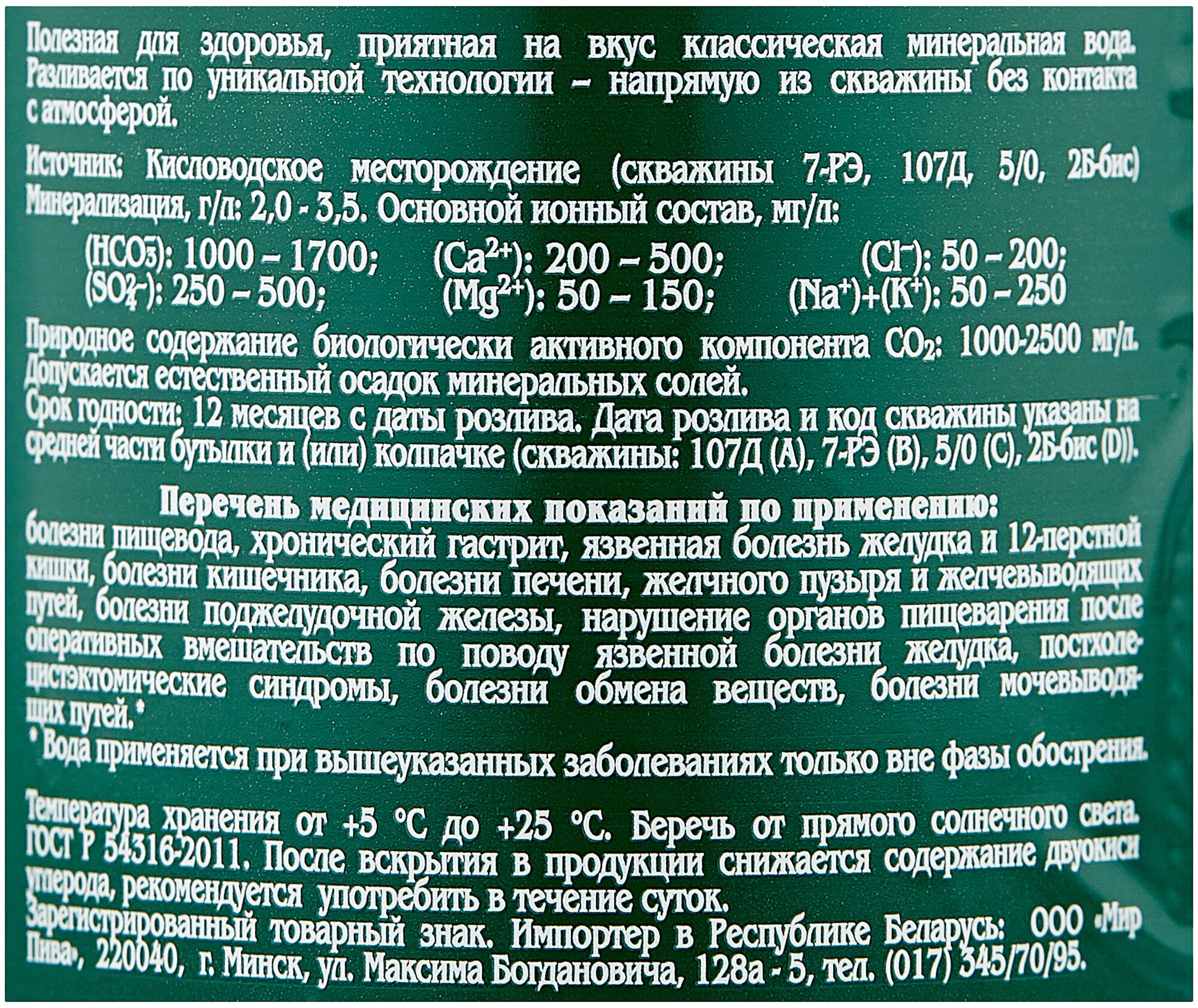 | Минеральная вода | гидрокарбонатно-сульфатная магниево-кальцевая |