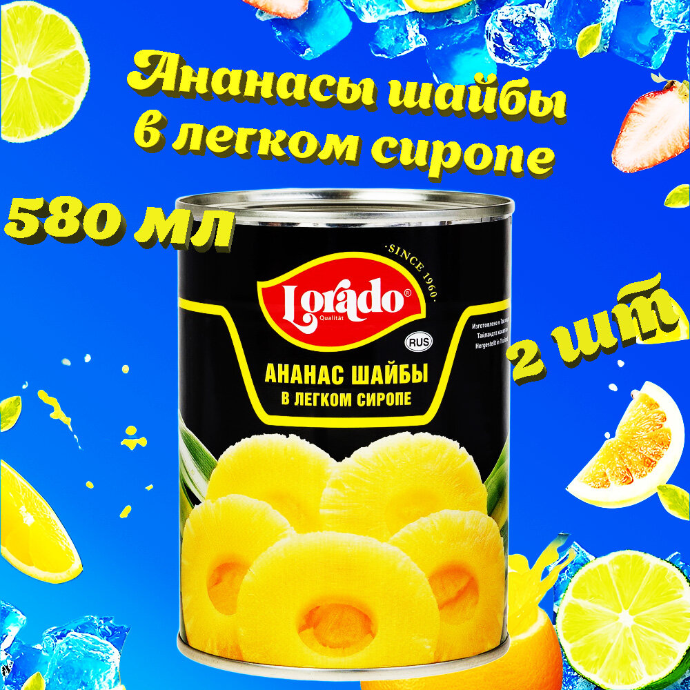 Ананас шайбы в легком сиропе, Lorado, 2 шт. по 580 мл информация: