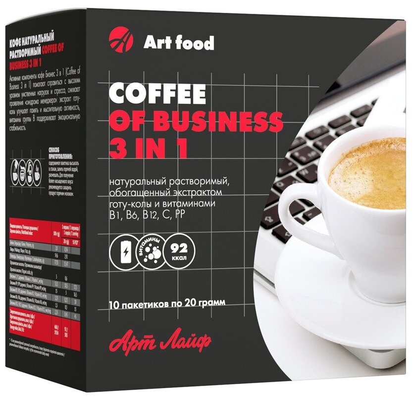 Растворимый кофе Арт Лайф Coffee of Business 3 in 1, в пакетиках, 10 уп., 200 г информация: