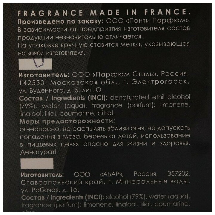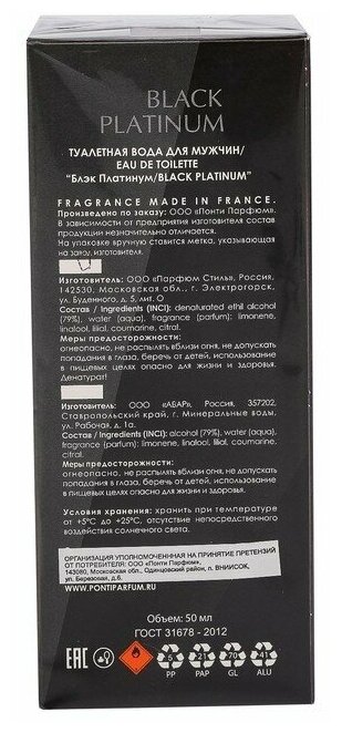 Туалетная вода "Grace Alba" Black platinum 50мл. информация: