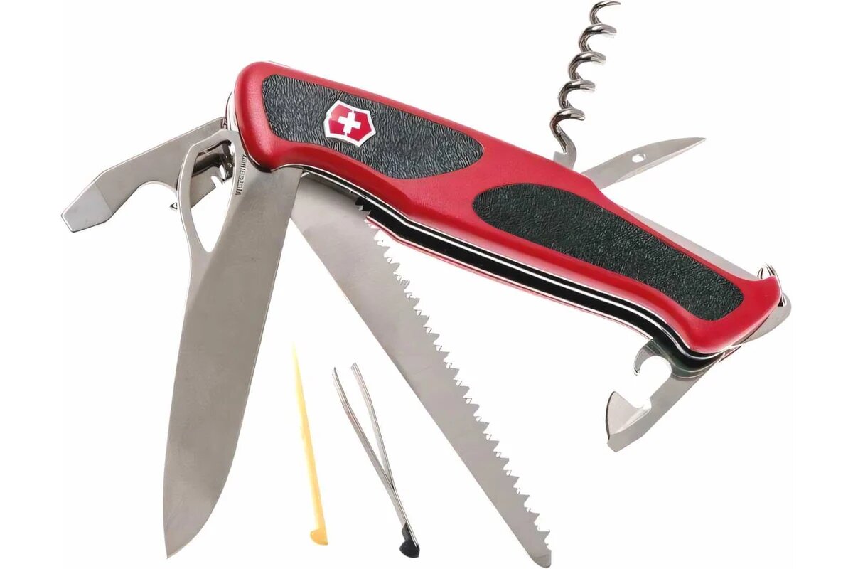Нож перочинный VICTORINOX RangerGrip 79, 130 мм, 12 функций, с фиксатором лезвия, красный с чёрным