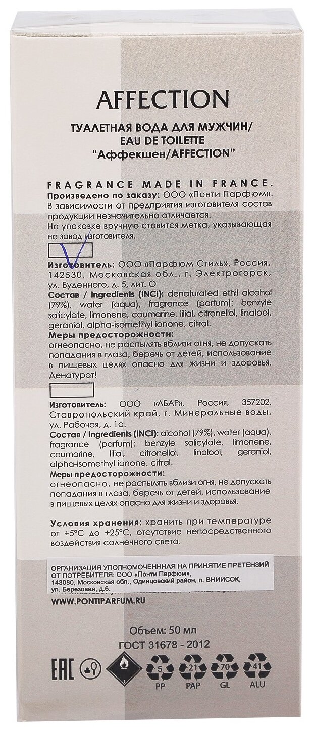 Ponti Parfum men Grace Alba - Affection Туалетная вода 50 мл.