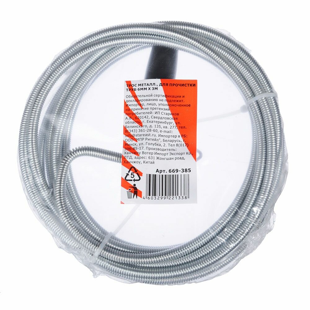 Металлический трос для прочистки труб FALCO 6 мм х 3 м 669-385
