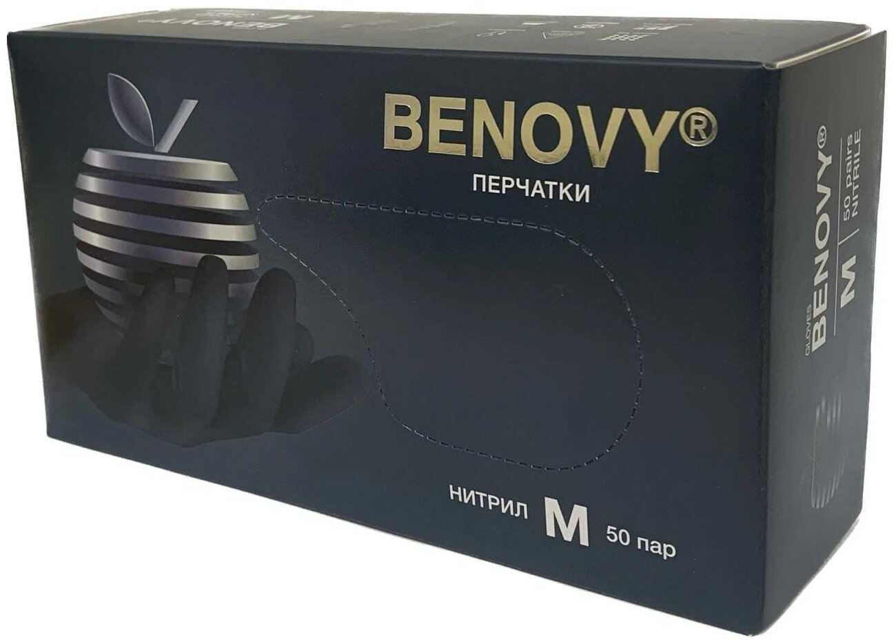 Benovy черные нитриловые перчатки (100шт) размер М 487 ₽