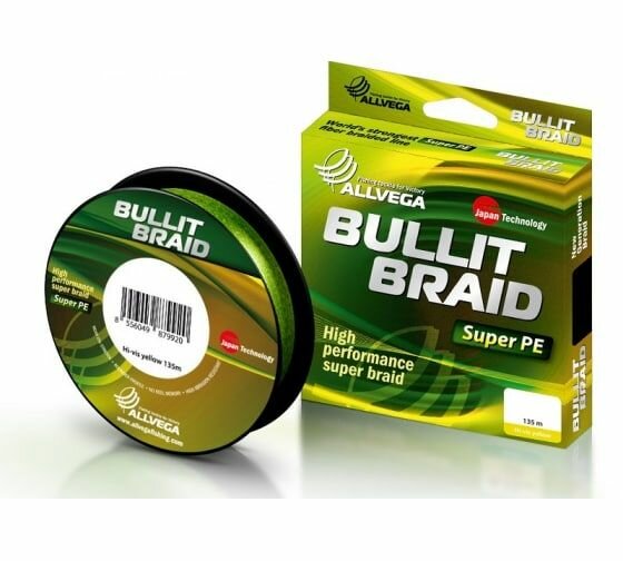 ALLVEGA Шнур плетёный Bullit Braid 135м флуо-жёлтый 0,12мм (7,1кг) информация: