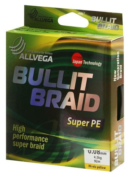 Леска плетеная ALLVEGA Bullit Braid hi-vis yellow 0.08 92м информация: