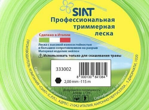 Леска SIAT Premium шестиугольник 2 мм 115 м информация:
