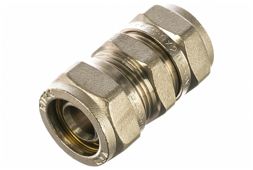 Соединитель обжимной 20 мм никелированная латунь VTm.303.N.002020