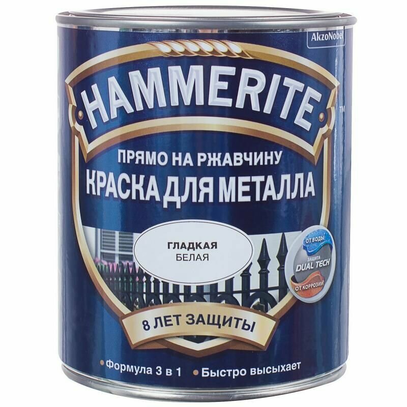 Краска по металлу HAMMERITE гладкая белая 0,5 л. информация: