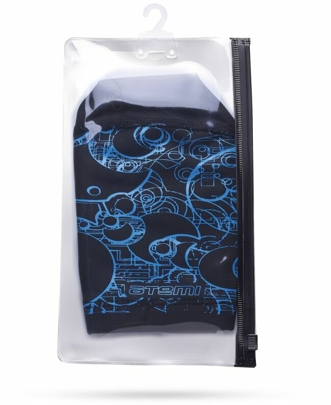 Шапочка для плавания тканевая с пу покрытием, Atemi чёрн.,принт син., Pu 303