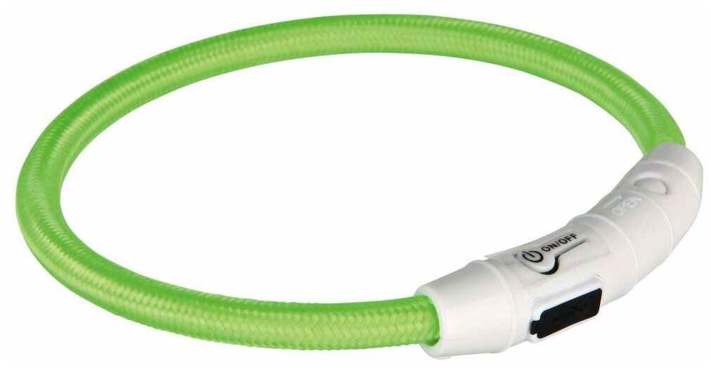 Ошейник светящийся для собак TRIXIE Мигающее кольцо USB XS–S: 35см нейлон зеленый USB
