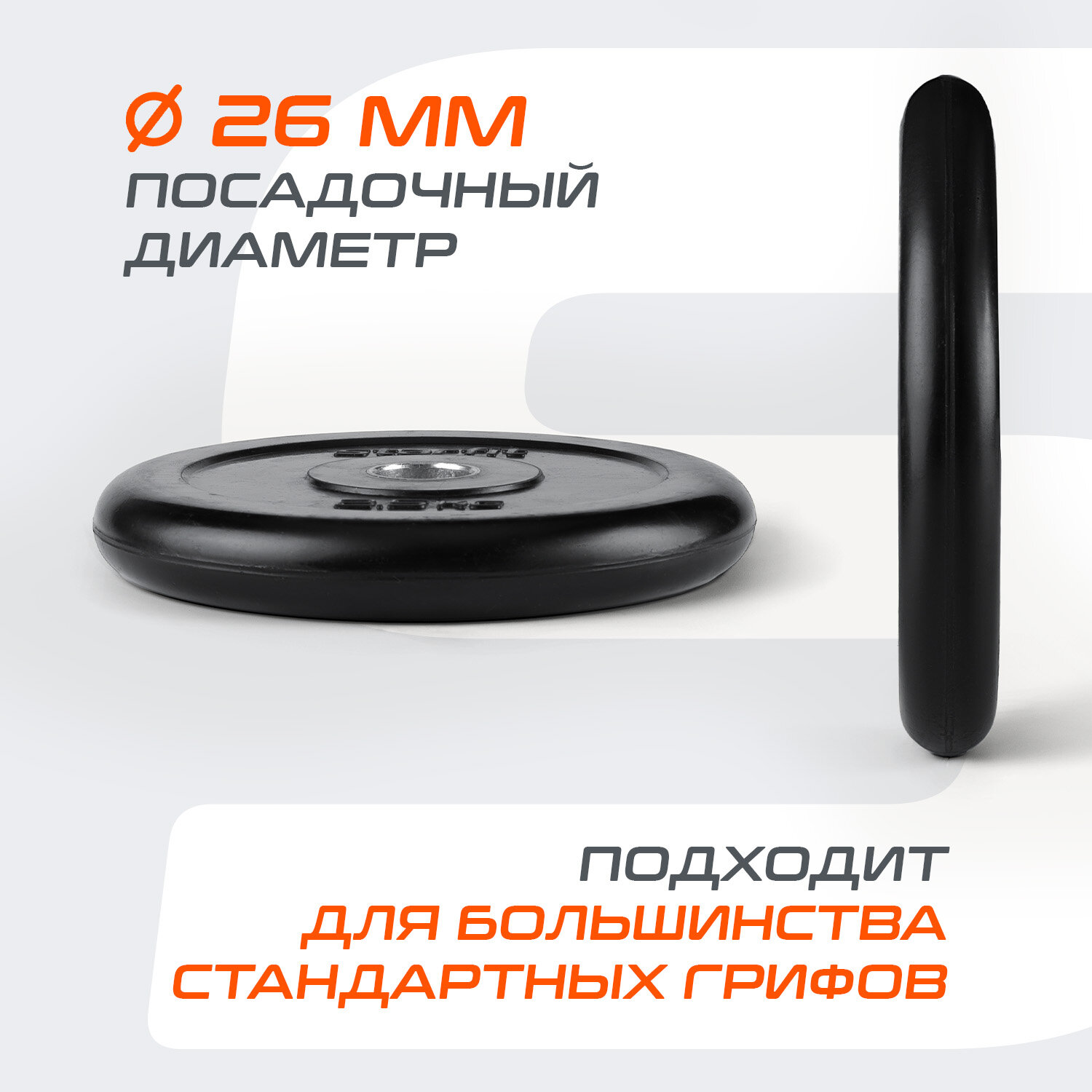 Диск обрезиненный BB-202 d=26 мм, стальная втулка, черный, 2,5 кг, Starfit