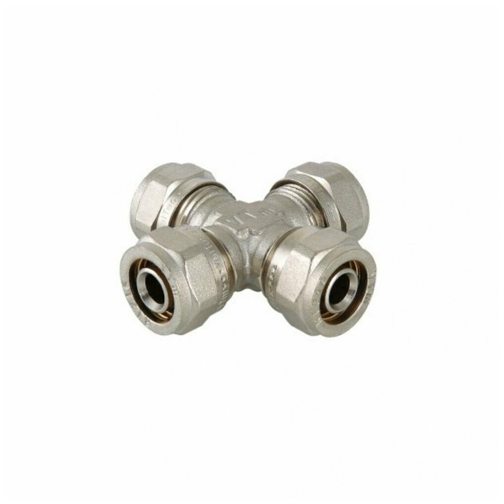5 шт - Крестовина обжимная 20 х 16 х 20 х 16 мм для металлопластиковых труб 16(2,0) и 20(2,0) VALTEC / Латунный фитинг под обжим для соединения трубопровода из металлопластика, VTm.341.N.201620 9 639 ₽