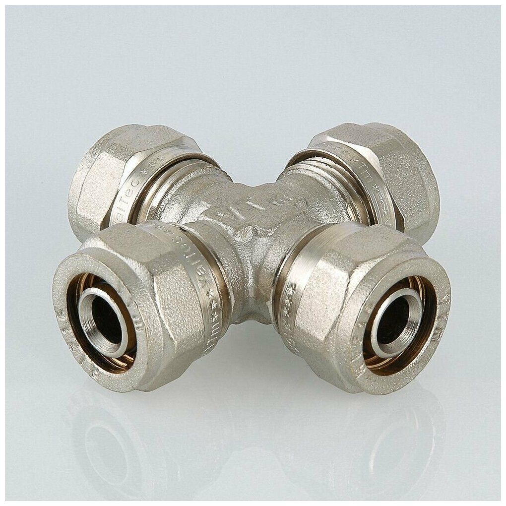 2 шт - Крестовина обжимная 20 х 16 х 20 х 16 мм для металлопластиковых труб 16(2,0) и 20(2,0) VALTEC / Латунный фитинг под обжим для соединения трубопровода из металлопластика, VTm.341.N.201620 4 023 ₽
