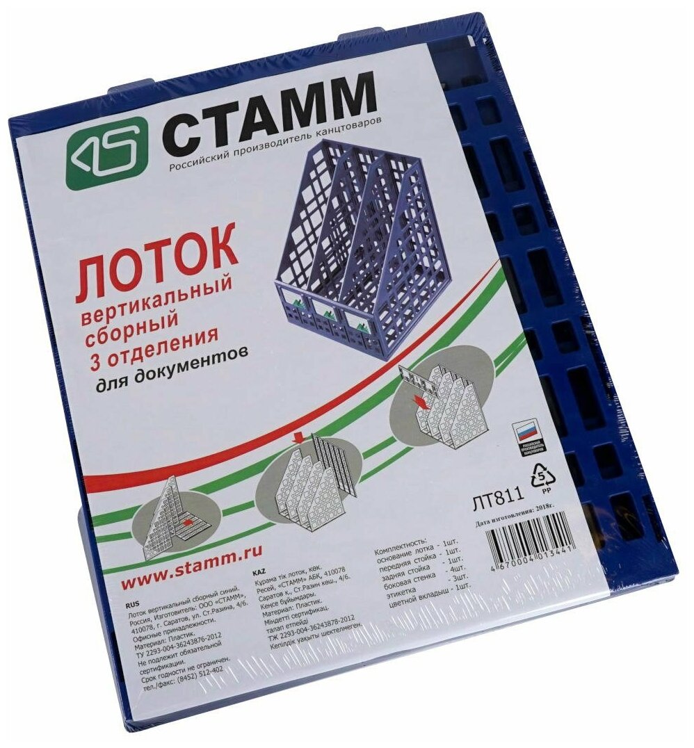 Лоток для бумаг вертикальный СТАММ, сборный, 3 отделения, синий, 215517 746 ₽