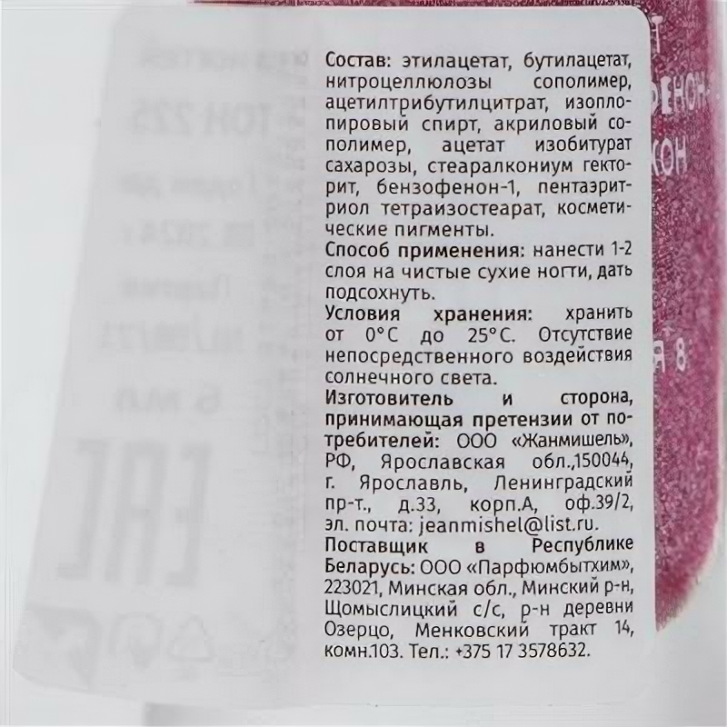 Лак для ногтей Jeanmishel, тон 225, 6 мл, JEANMISHEL информация: