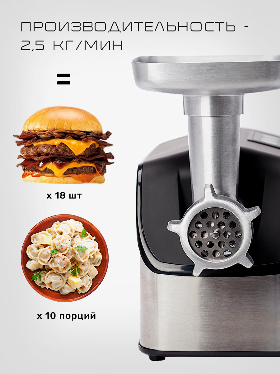 Мясорубка MI-07-G091/мощность 2000 Вт/медный двигатель/низкий уровень шума/реверс/3 диска 3,5,7 мм/алюминиевая форма