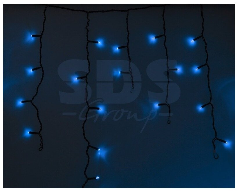 Отзывы на Гирлянда бахрома светодиодная 2,4х0,6м 88LED синий IP44, постоянное свечение,черный провод 255-031