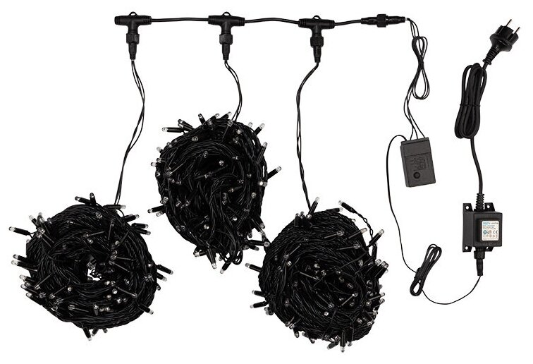 Гирлянда светодиодная "Клип-Лайт" 3 нити по 20 м, 24 В, 399 LED белые, IP54, свечение с динамикой, Neon-Night 323-305