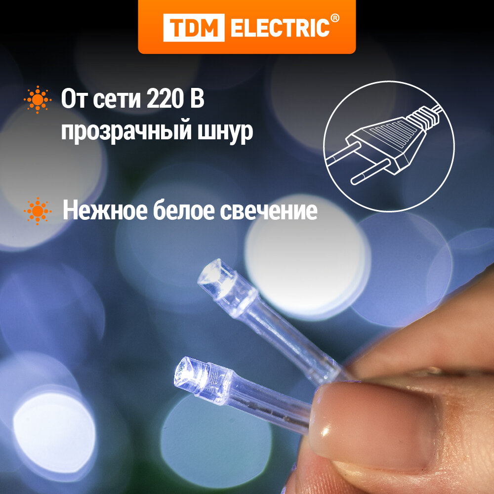 Светодиодная гирлянда TDM ELECTRIC светодиодная СГ100Б10, белая, 10м, 8 режимов, 250 В 550 ₽