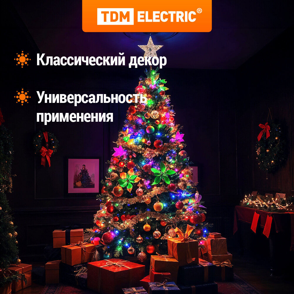 Гирлянда TDM СГ100MЗ10, 10м, 220В, разные режимы свечение, разноцветный цвет, IP20