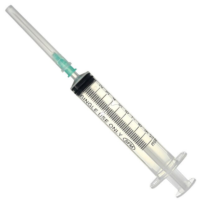 Отзывы на Шприц 10 мл. трехкомпонентный одноразовый, стерильный с надетой иглой 0,8 мм x 40 мм - 21G SFM, Германия, 100 штук