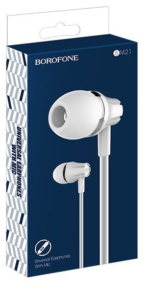 Наушники Borofone M21 Graceful, вакуумные, микрофон, Jack 3.5 мм, кабель 1.2 м, белые