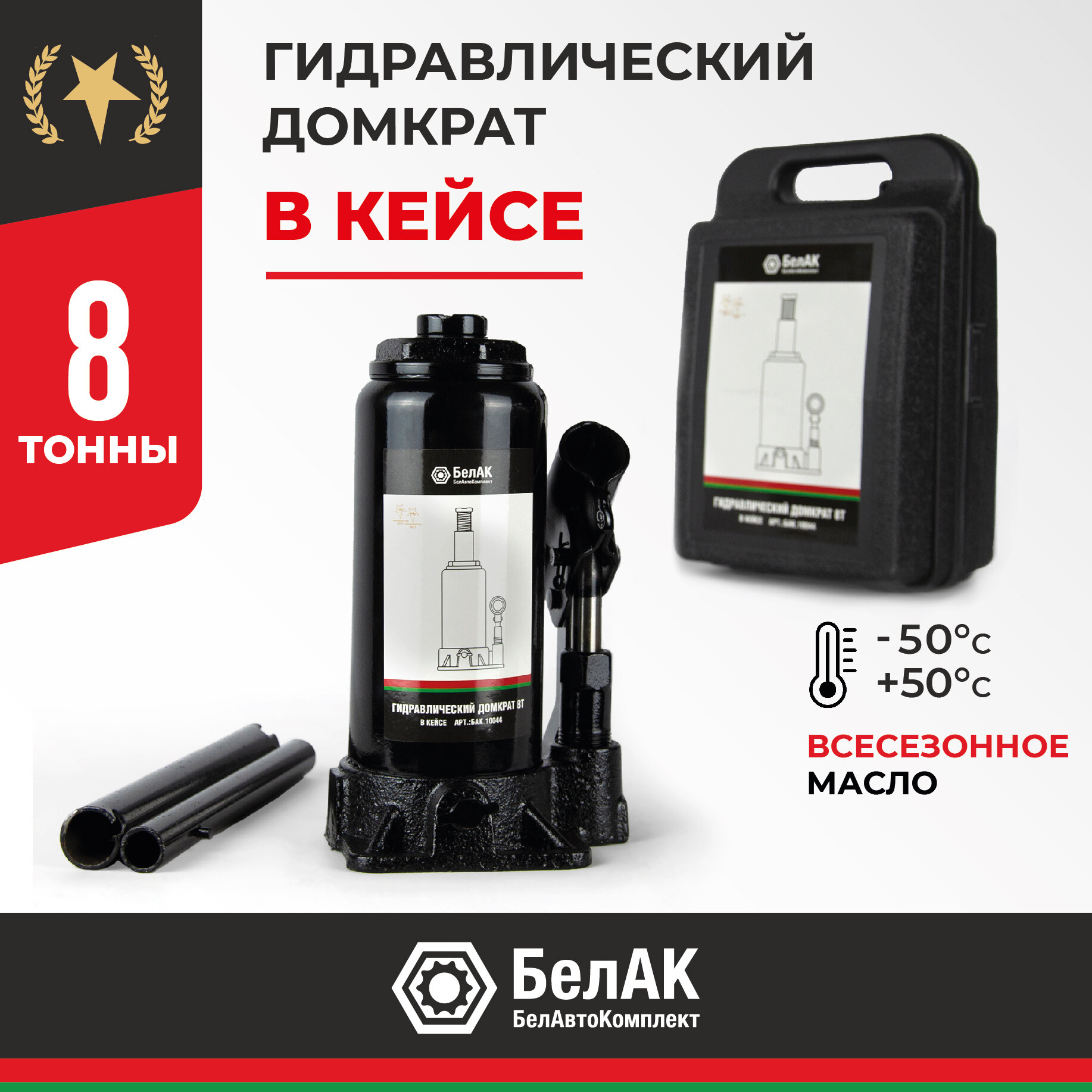 Белавтокомплект БАК10044 Домкрат бутыочный гидравический 8т в кейсе БеАК