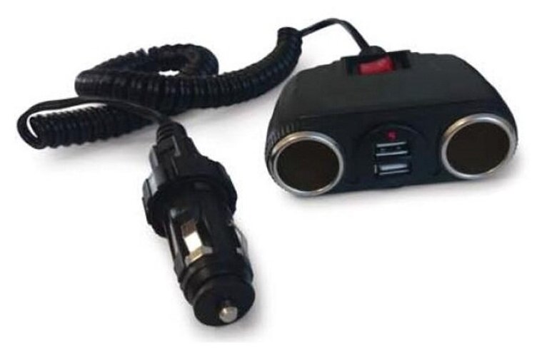 Разветвитель в прикуриватель "AVS" (2 гнезда+2USB с проводом, с тумблером CS230U)