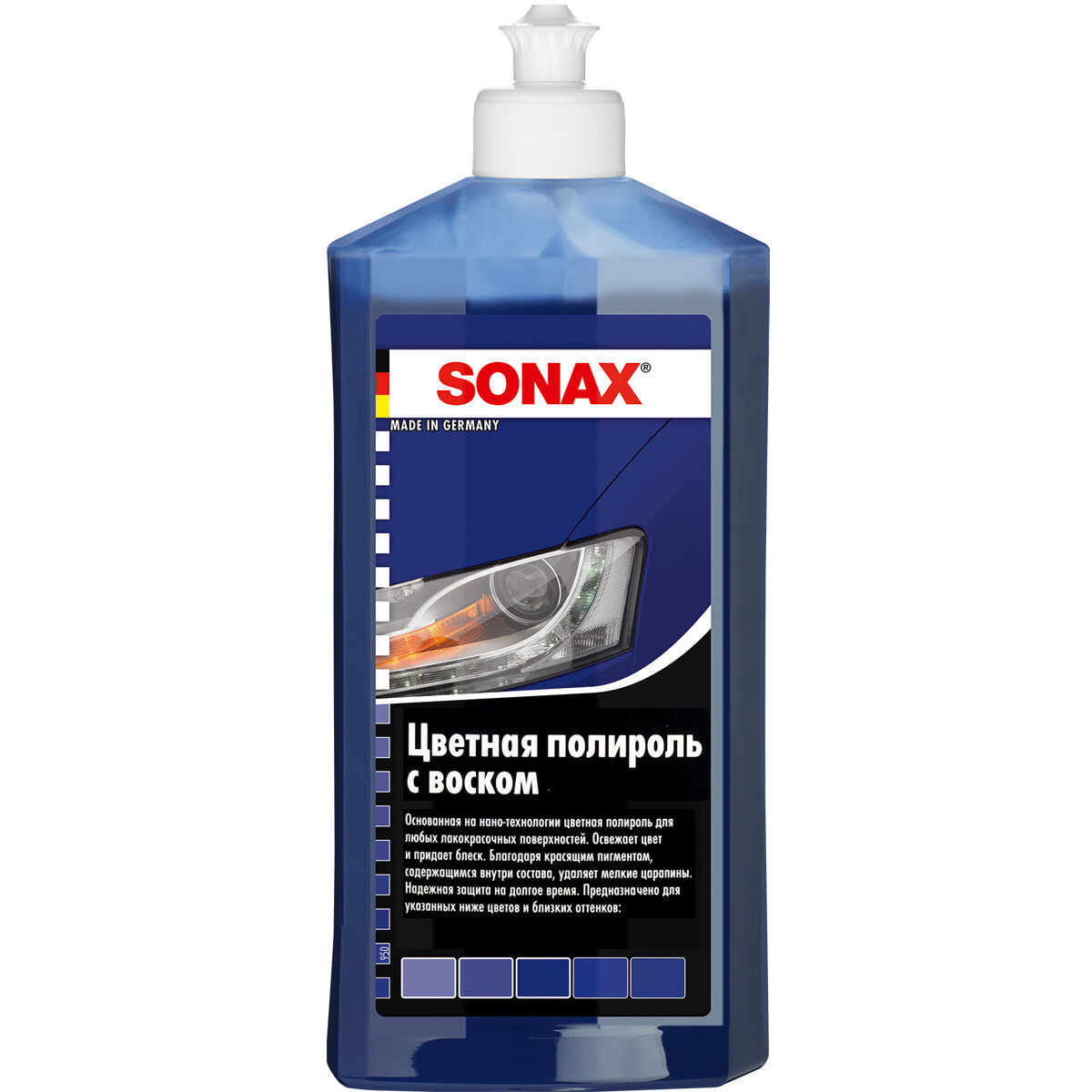 Воск для автомобиля SONAX цветной полироль с воском (синий) 0.5 л информация: