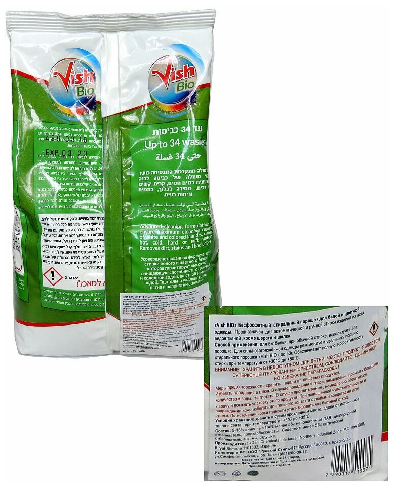 Стиральный порошок Vish Bio 1,25 кг информация: