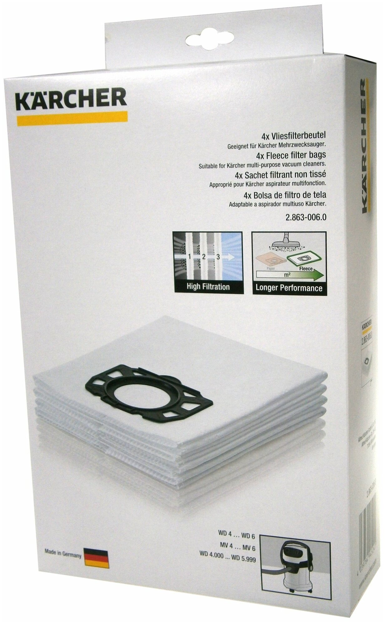 Мешки для сбора пыли KARCHER, комплект 4 шт из нетканого материала, для пылесосов WD 4/ 5/6, 2.863-006.0