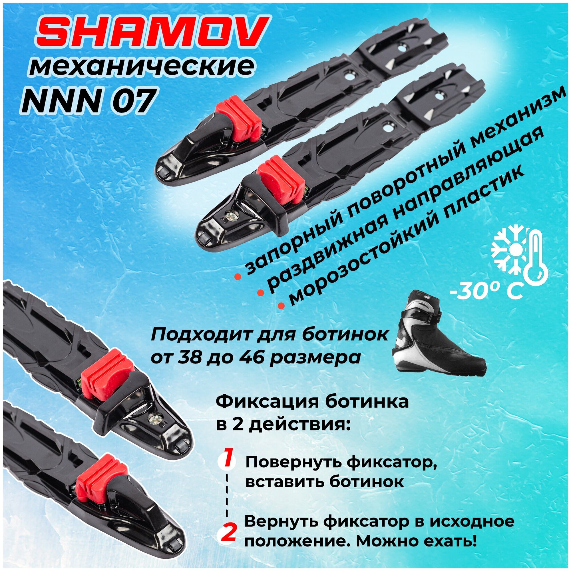 Крепления для лыж механические Shamov NNN 07 / Лыжные крепления Шамов / Крепление для лыжероллеров информация: