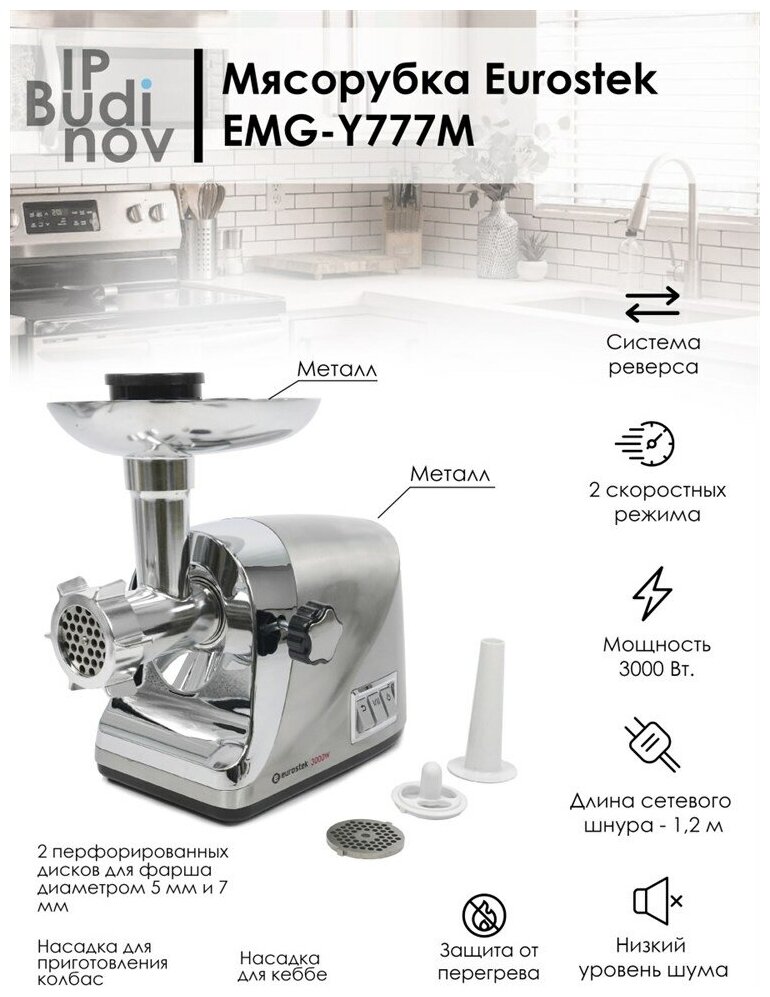 Мясорубка Eurostek EMG-Y777M Серебристый информация: