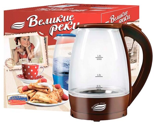 Чайник электрический Великие Реки Дон-1 коричневый, 1,8 л, стекло, 1850 Вт