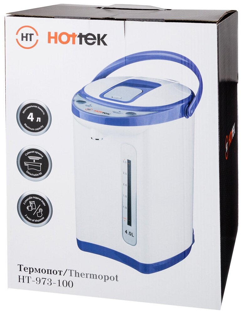 10 цен на Термопот HOTTEK HT-973-100 4л. 750Вт металл/пластик (двойные стенки), белый/синий (HT-973-100)