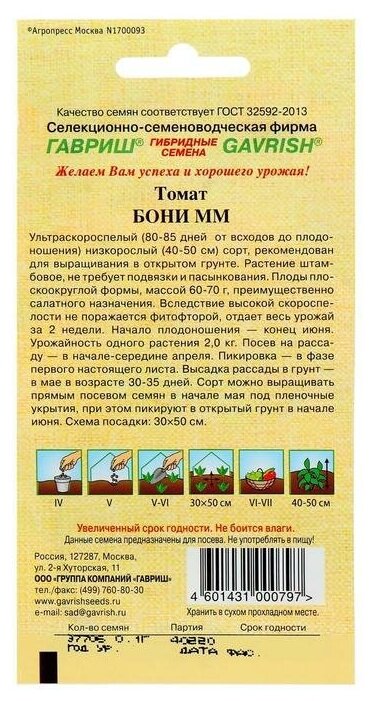 10 цен на Томат "Гавриш" Бони мм 0,1г