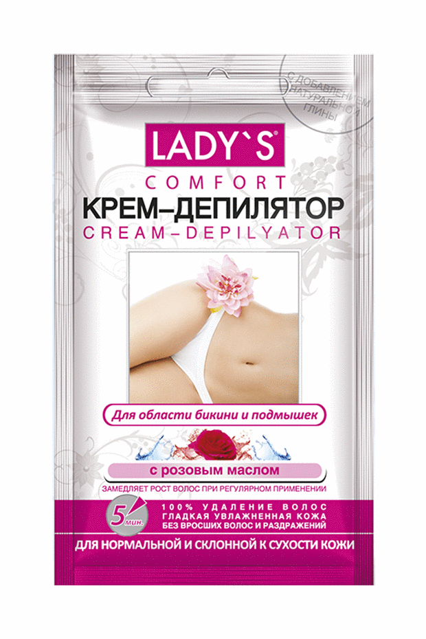 LADY`S Крем-депилятор Comfort для области бикини и подмышек с розовым маслом
