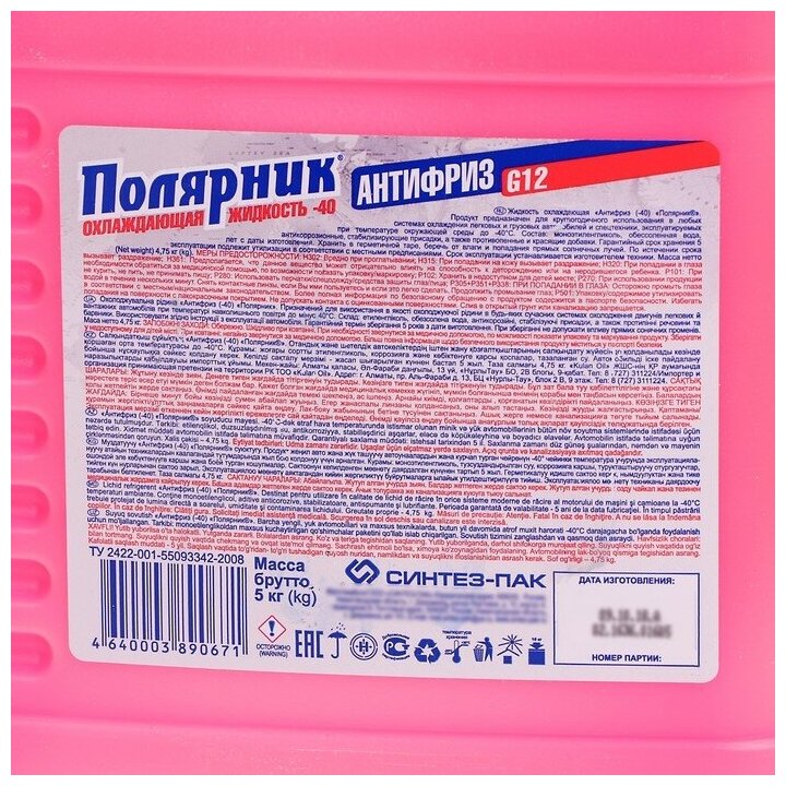 10 цен на Антифриз "Полярник" (-40) красный , в п/э бут. 5кг