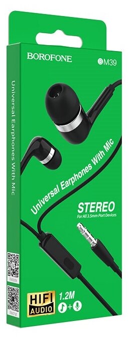 Проводные наушники BOROFONE BM39 Refined, Jack 3.5mm, 1.2 м, черный