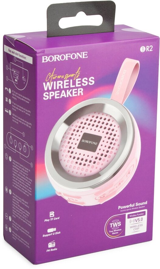 Портативная акустика Borofone BR2 Aurora, розовый (12837) 1 621 ₽