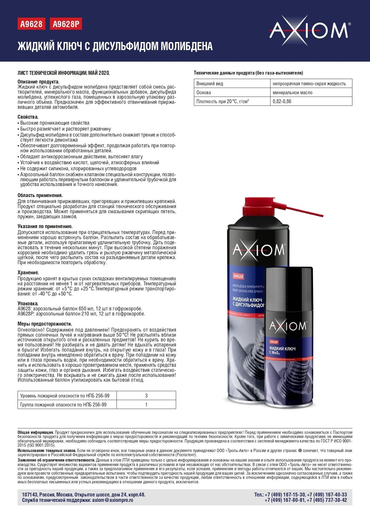 A9628p_жидкий Ключ! С Дисульфидом Молибдена, 210Мл A9628p AXIOM арт. A9628P