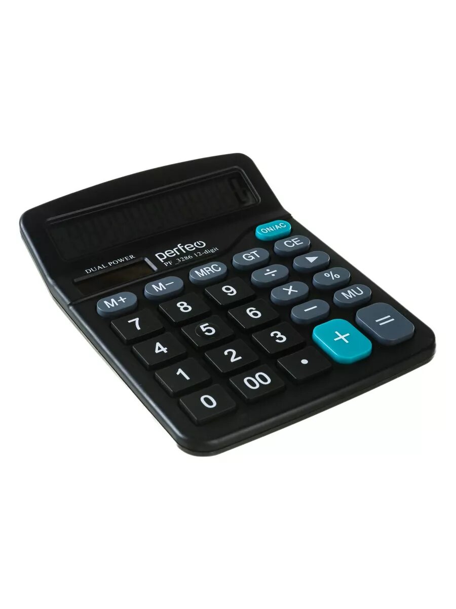 Настольный калькулятор Калькулятор Perfeo PF_3286, бухгалтерский, 12-разрядов, GT, черный (DC-837B)