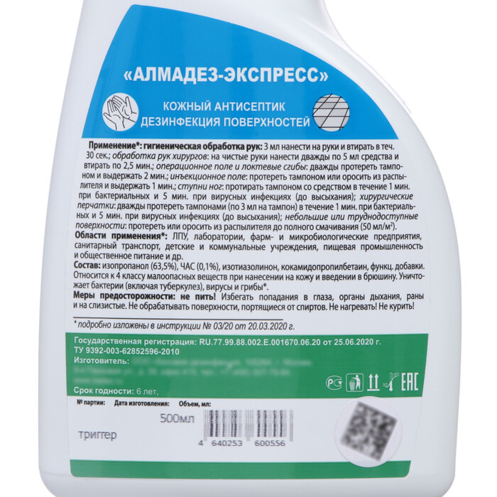 Антисептик для рук Алмадез Экспресс 500 мл триггер АЭ-505 . информация: