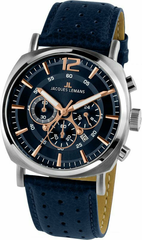 Наручные часы Jacques Lemans 1-1645R, мужские кварцевые спортивные часы Жак Леман с хронографом и датой на кожаном ремне 23 650 ₽