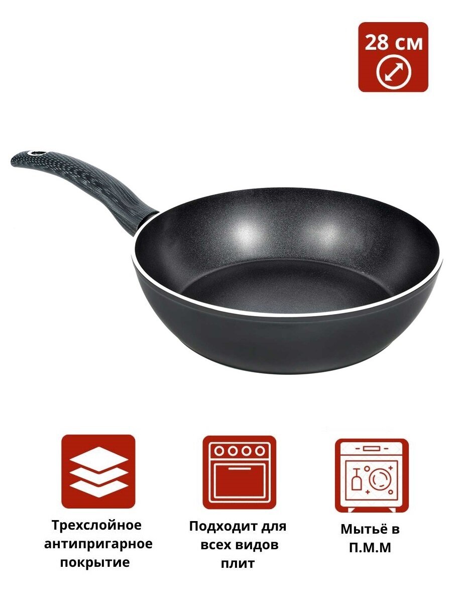 Сковорода - сотейник "Termico" Classico, глубокая, диаметр 28 см, c трехслойным антипригарным покрытием. информация: