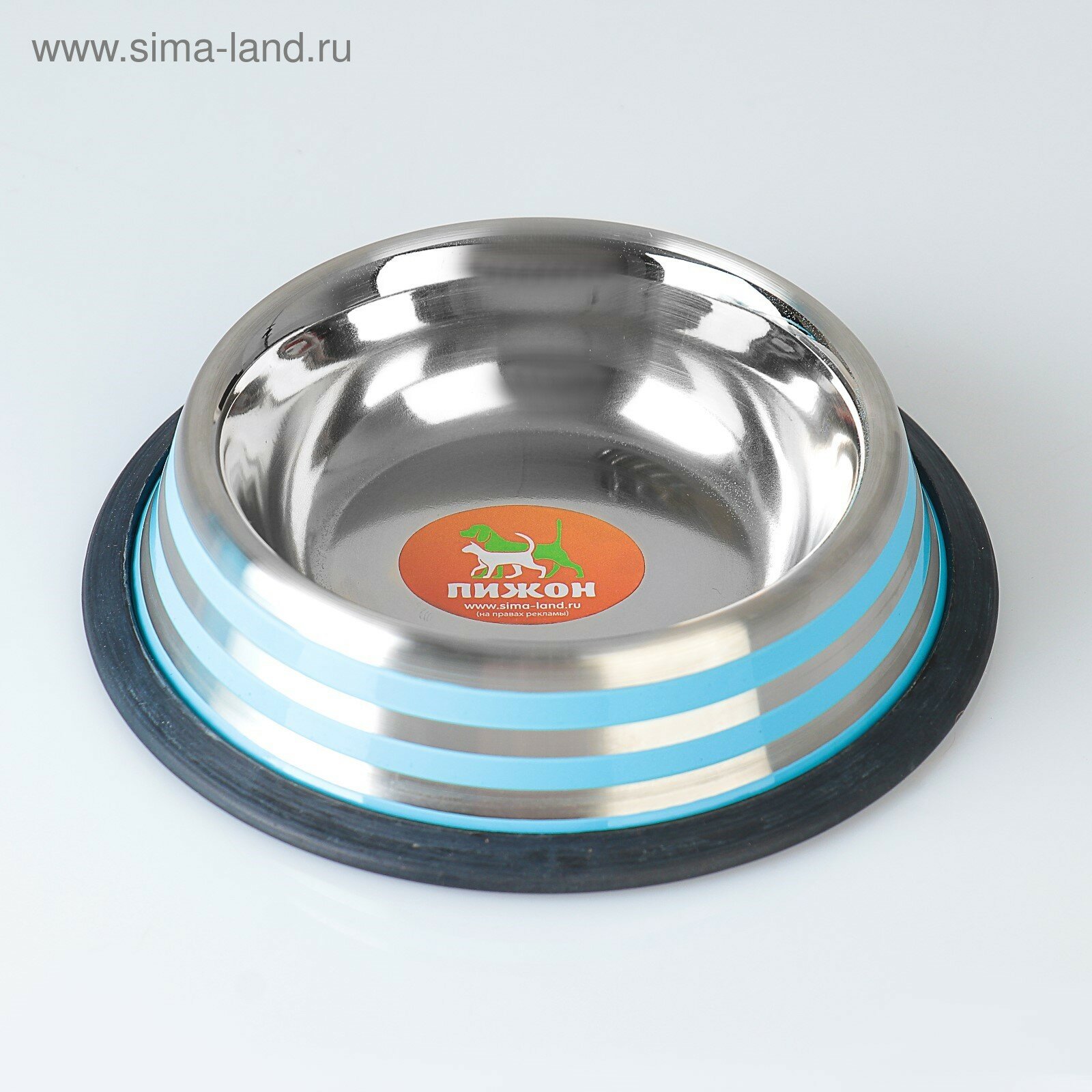 Миска для животных Пижон с нескользящим основанием с цветными полосками, 230 мл, голубая