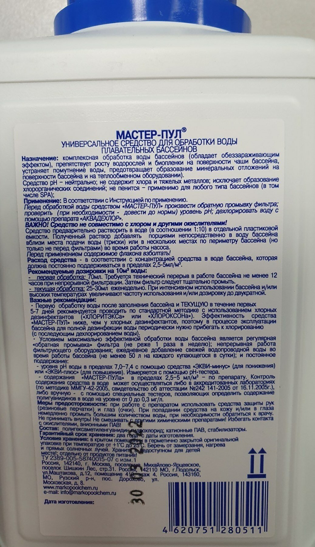 Мастер-пул (1л): Бесхлорное средство для очистки воды в бассейне 4 в 1. Маркопул Кемиклс